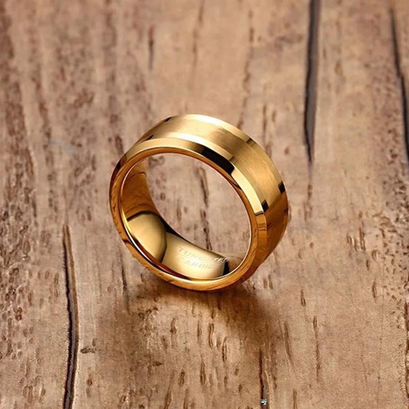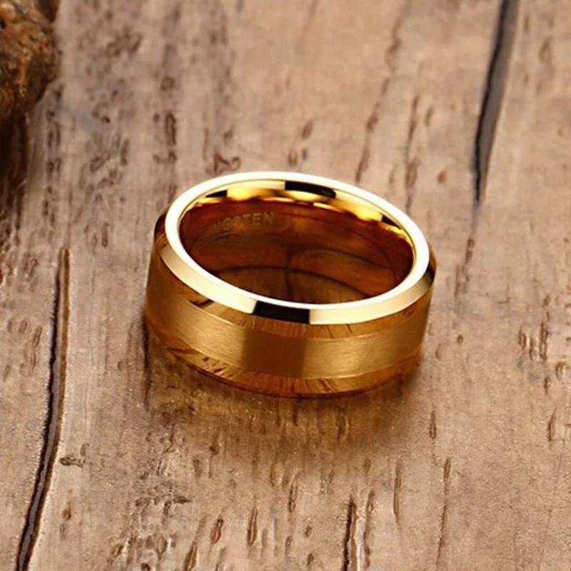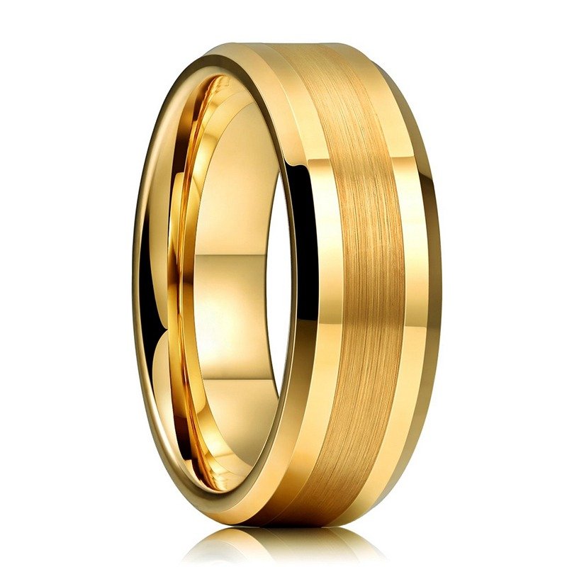| Item Details | Color: Gold Material: Tungsten Carbide Genuine Quality with Stamp and Wearables Logo Size: 7,8,9,10,11,12 USA Size Width: 08 mm, Thickness: 2.3 mm approx Weight: 16 gms approx Wedding Band, Engagement Band, Wedding Ring, Engagement Ring, Tungsten Carbide is Scratch Free, Rust Free, Long Lasting Material |