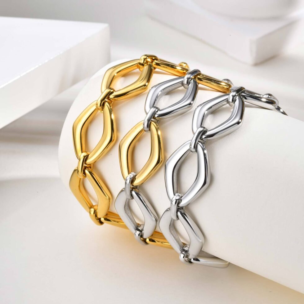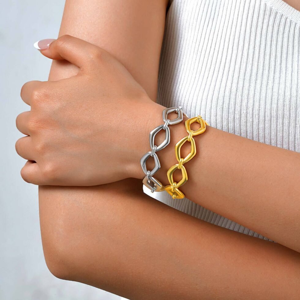 Discover elegance with our female bracelets, crafted from high-quality materials like copper alloy with rhodium plating and stainless steel. Each piece features AAA-quality cubic zirconia, offering a dazzling sparkle and unmatched beauty. The rhodium-plated copper alloy provides a durable, tarnish-resistant shine, while the stainless steel designs combine sophistication with resilience. Our collection of artificial jewelry blends artistry and superior craftsmanship, ensuring each bracelet elevates your style and makes a bold statement.