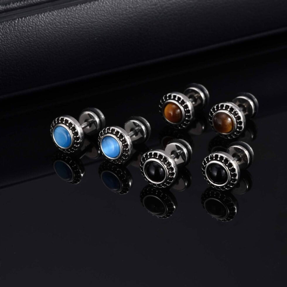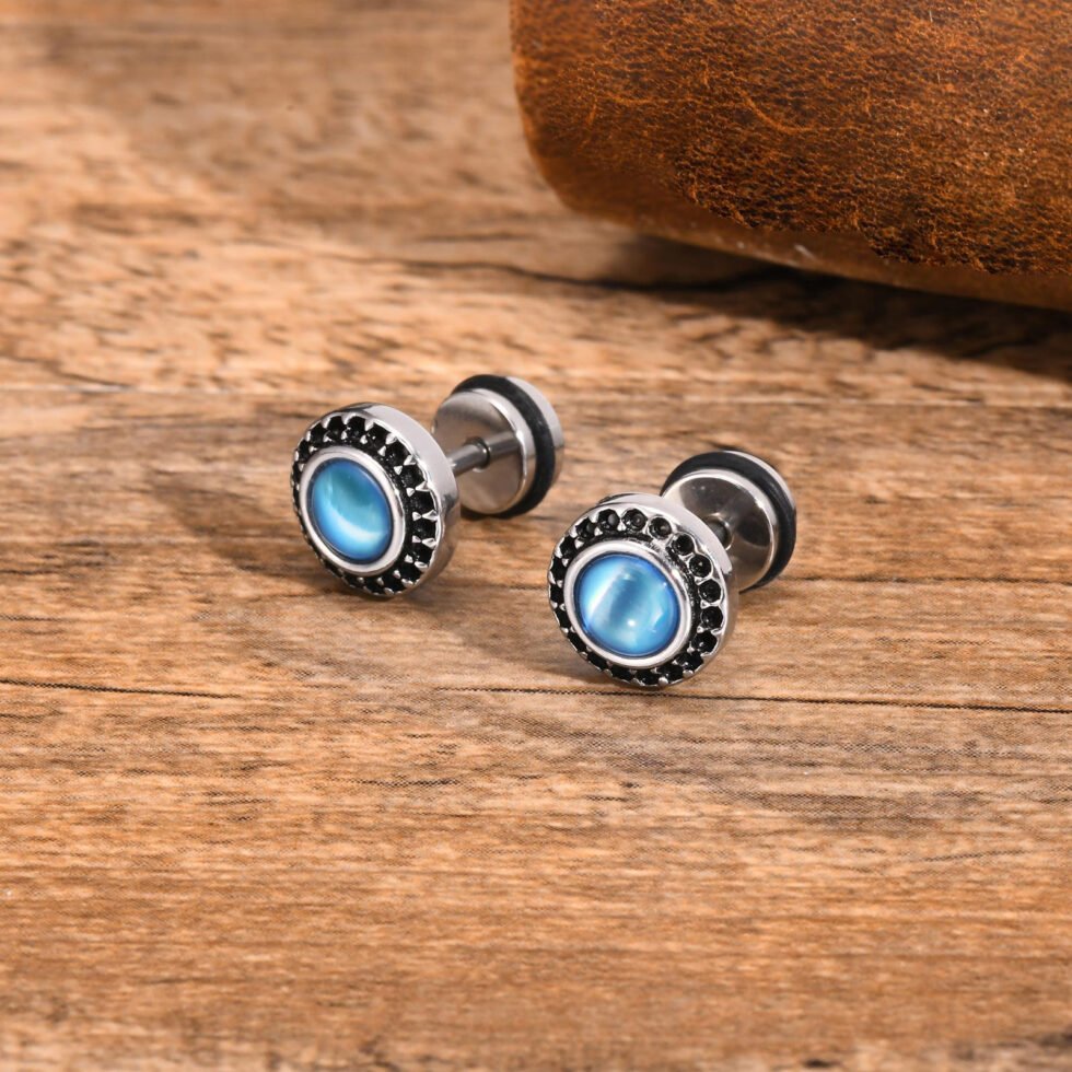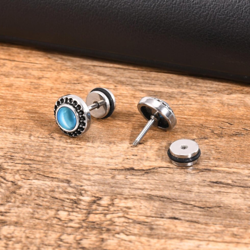 “Men’s Silver Ear Studs: 316 stainless steel,
