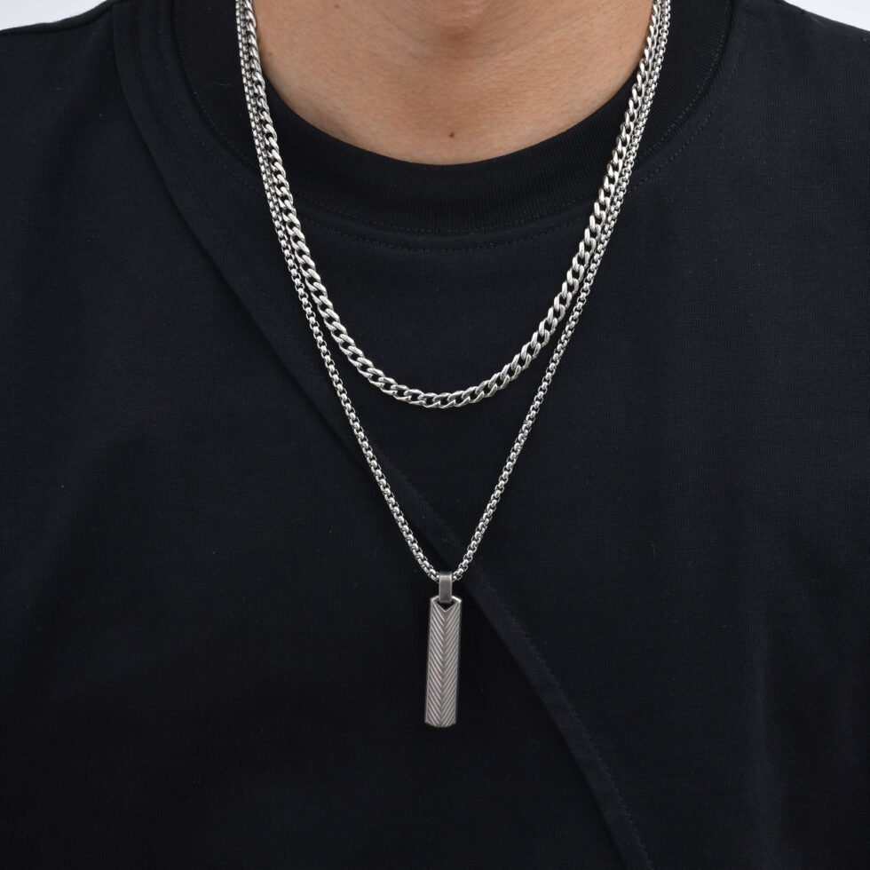 Male Pendnat and Necklace | Stainless Steel: Silver Gold Black Pendant and Neckalce for Men