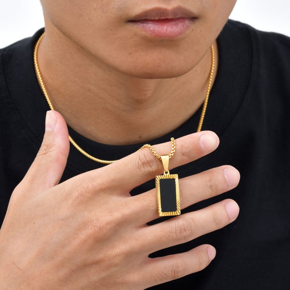 Male Pendnat and Necklace | Stainless Steel: Silver Gold Black Pendant and Neckalce for Men