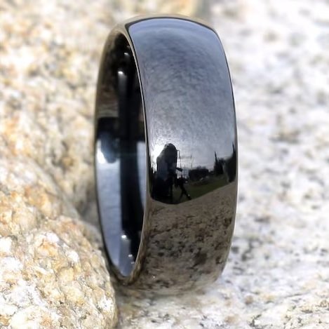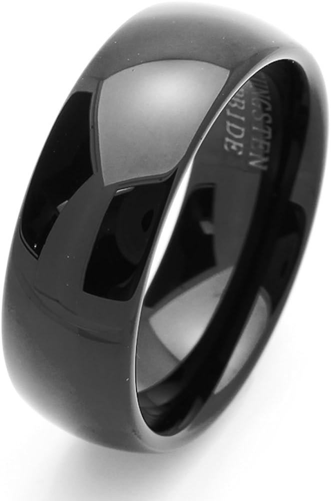 Item Details | Color: Black Material: Tungsten Carbide Genuine Quality with Stamp and Wearables Logo Size: 7,8,9,10,11,12 USA Size Width: 08 mm, Thickness: 2.3 mm approx Weight: 16 gms approx Wedding Band, Engagement Band, Wedding Ring, Engagement Ring, Tungsten Carbide is Scratch Free, Rust Free, Long Lasting Material |