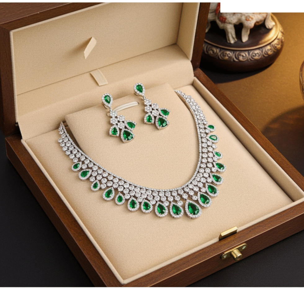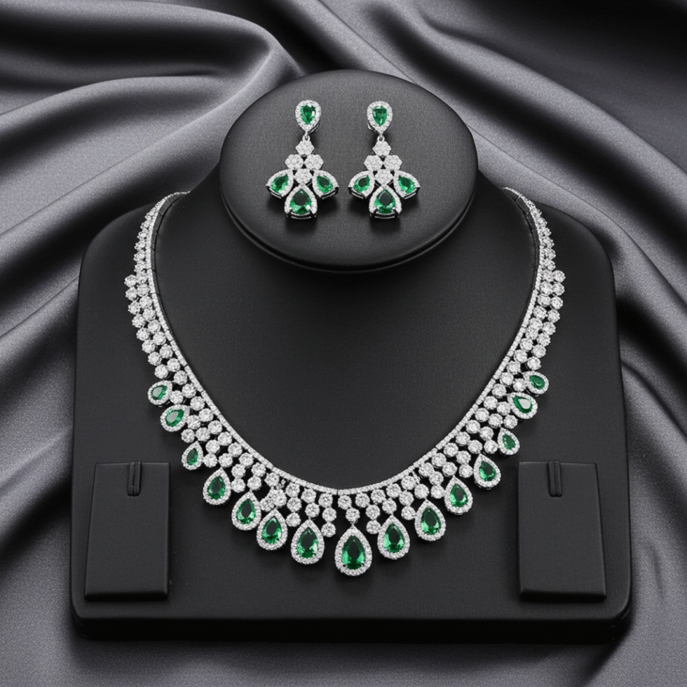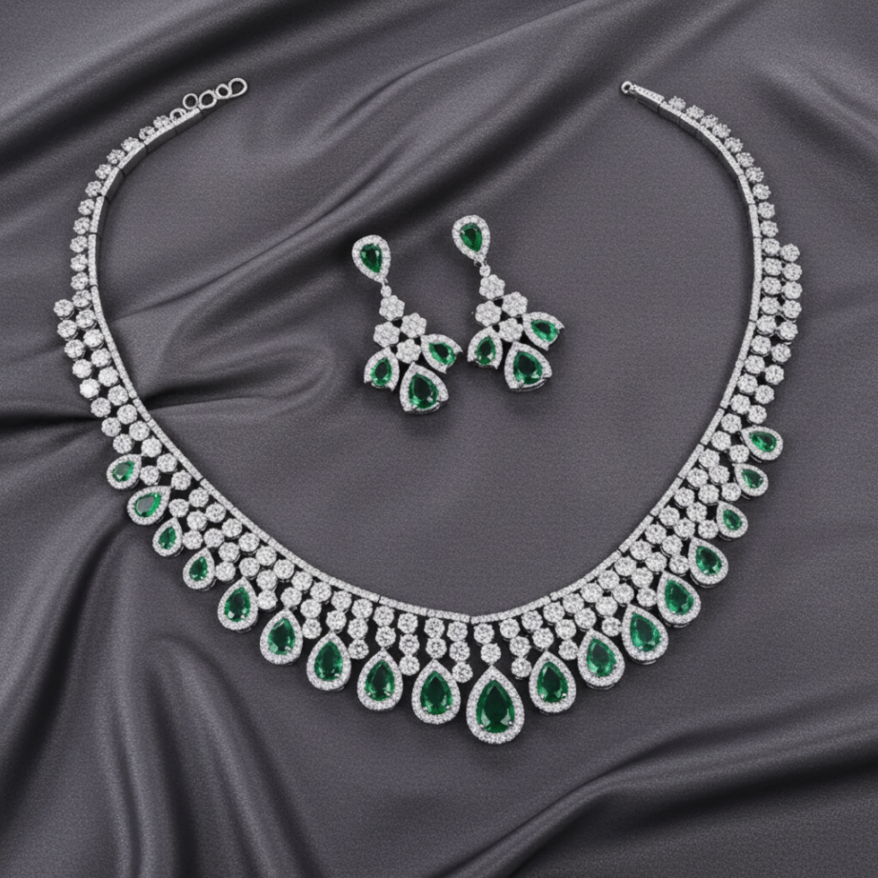 These sets feature superior quality and are made from diverse materials, including copper alloy, enhanced with the finest Rhodium, Platinum, and Gold Plating. Adorned with AAA-grade Cubic Zirconia stones in various cuts, these designs are thoughtfully created to enhance their appeal. The exquisite array includes Blue Sapphire, Green Emerald, Red Ruby, and other vibrant colors of Cubic Zirconia, ensuring a stunning resemblance to authentic stones.