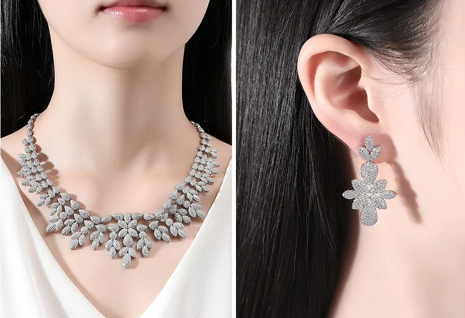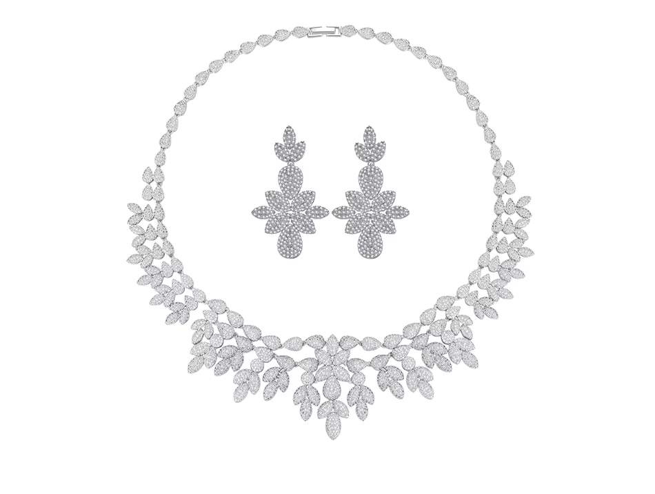 These sets feature superior quality and are made from diverse materials, including copper alloy, enhanced with the finest Rhodium, Platinum, and Gold Plating. Adorned with AAA-grade Cubic Zirconia stones in various cuts, these designs are thoughtfully created to enhance their appeal. The exquisite array includes Blue Sapphire, Green Emerald, Red Ruby, and other vibrant colors of Cubic Zirconia, ensuring a stunning resemblance to authentic stones.